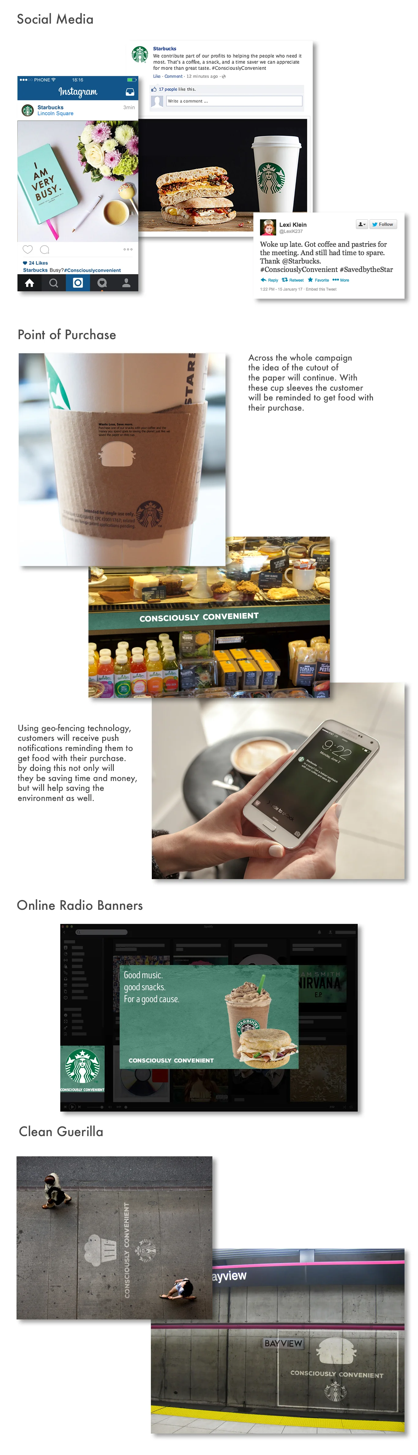 To create a campaign where Starbucks can remind the consumers that the convenience of buying food with their food comes with the reward of knowing that not only they saved time and money, but also helped saved the environment.