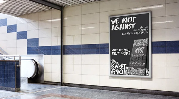 the strategy behind the campaign is to get consumers to buy Sweet Riot organic fair trade chocolates by enhancing the values behind a revolution.